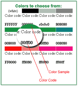 The color table provides sample colors, with the color code for each one. Color Table