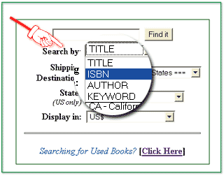 you can enter title, author, ISBN # or keyword. ISBN is the