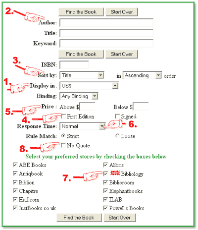 The used book search offers many refinements. Please take a